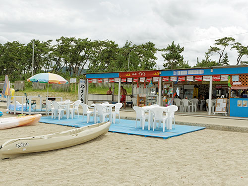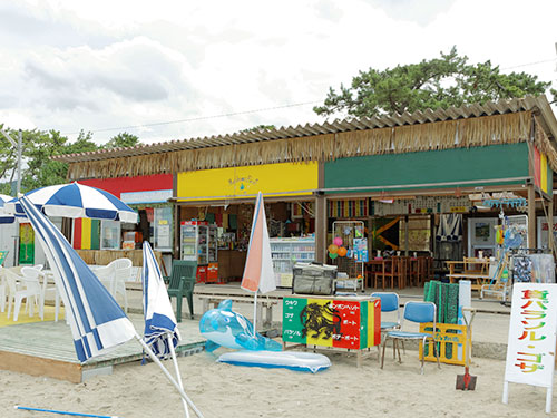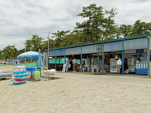 [Info] showers, meals(BBQ is also OK), open late, AED units [Rental] parasols, swim rings, straw mats, boats