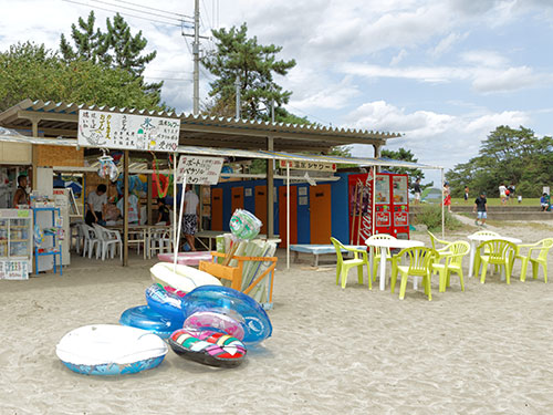 Shiroyama Beach Hut Serves a variety of food and drink showers, meals, open late [Rental] parasols, swim rings, straw mats, boats